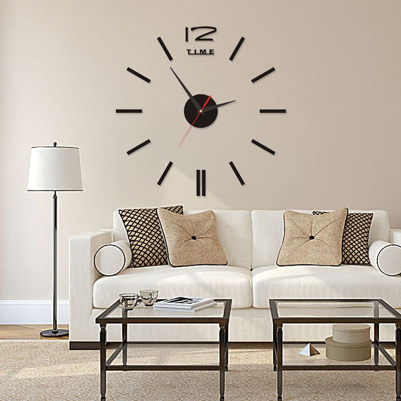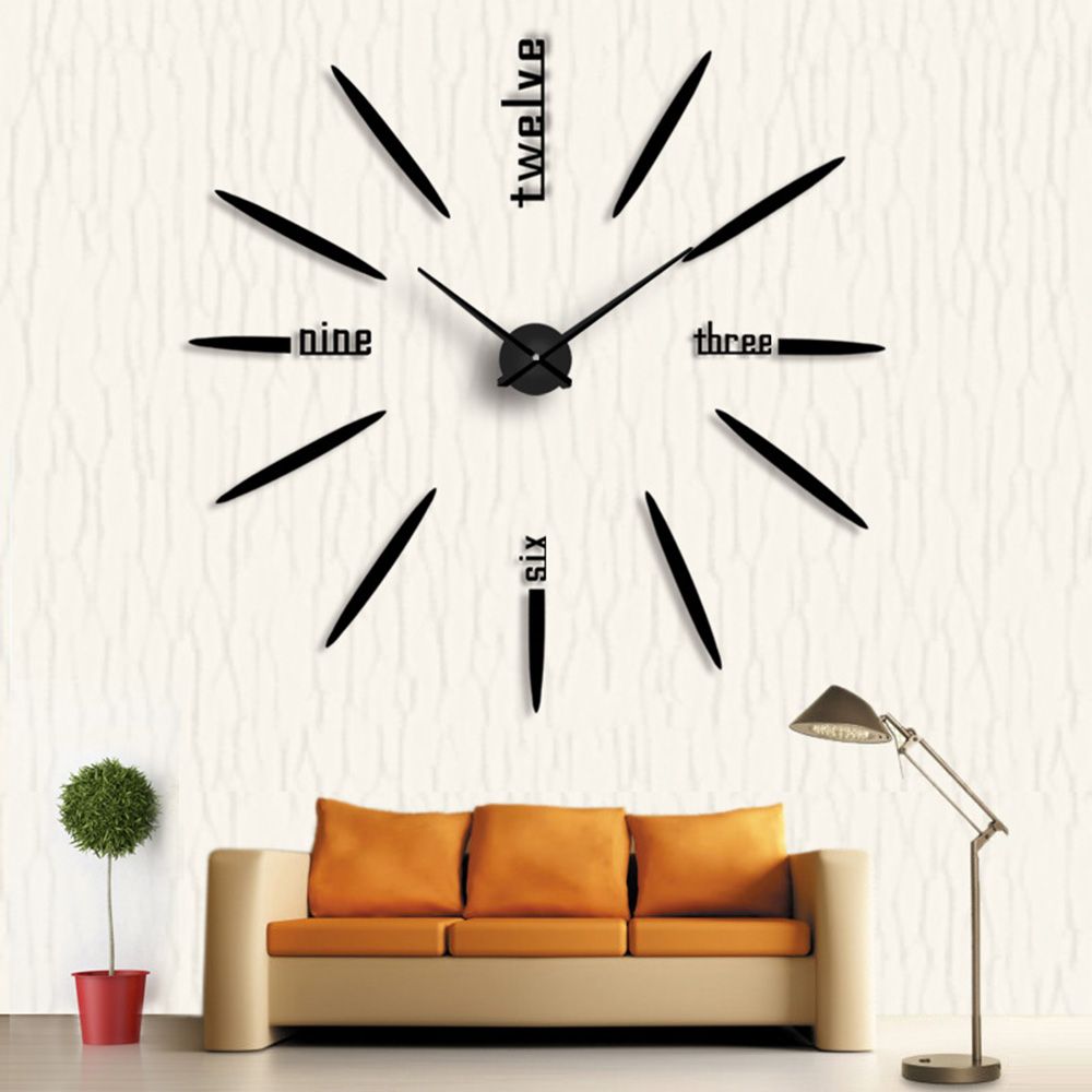 Living Room Big Clock 3d Creative Art Wall Stick Watch Diy Clock