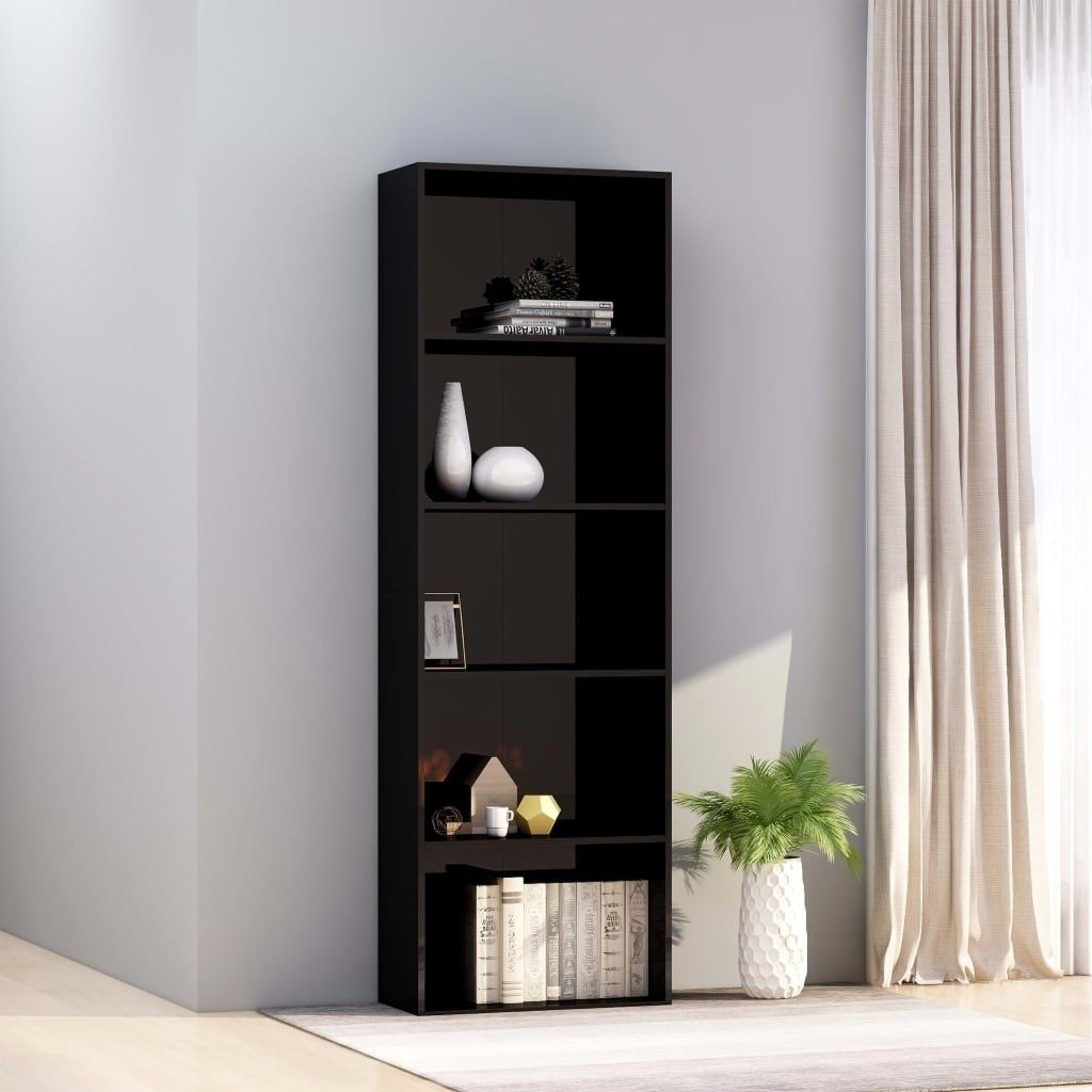 2020 Bookcase 5 Compartments High Gloss Black 60x30x189 Cm
