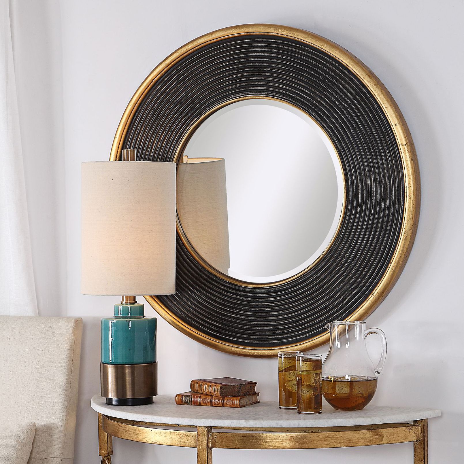 Black Metal Linear Round Mirror Kirklands