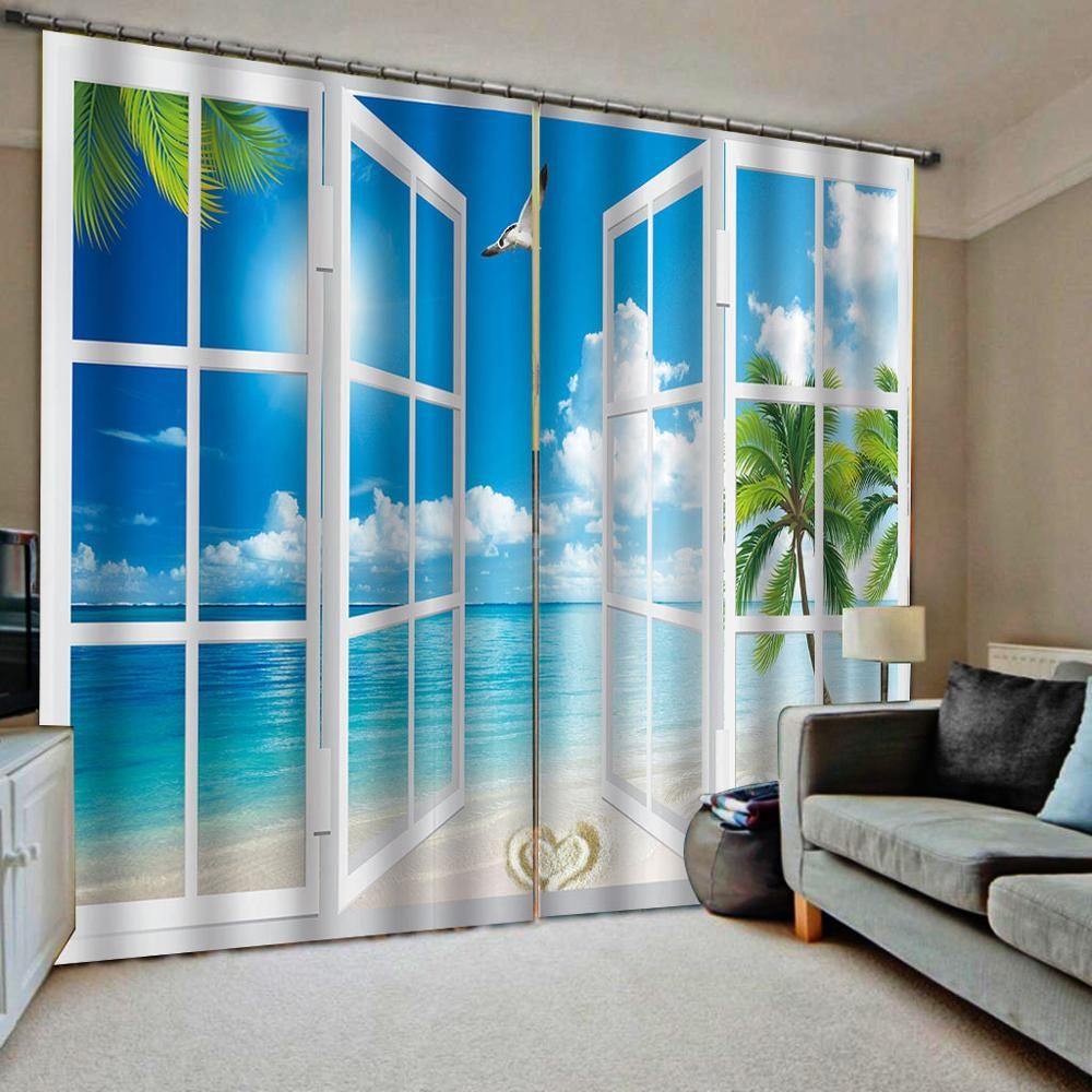 Beach Curtains Blue Curtain Nature Art Print Drapes Living Room