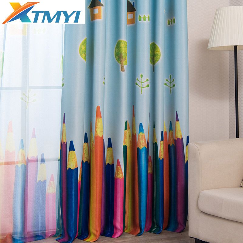 Window Pencil Curtains Living Room Boys Children Cartoon Blue