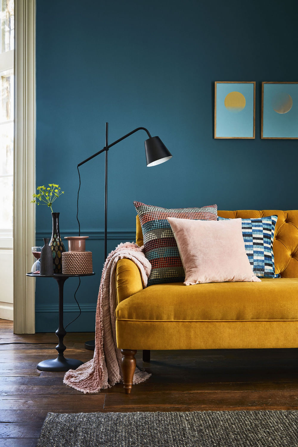 If for you a well designed living room is the one that visually looks breezy cool and refreshing blue is the color category to take into consideration and to pair with the brown furniture you own.