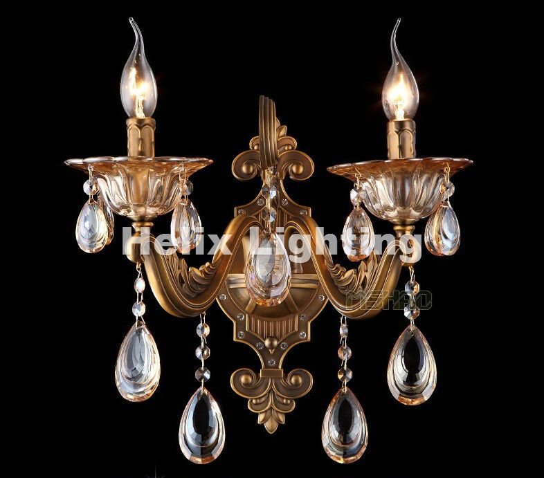 2020 Zinc Alloy Brass Color 2 Lamps Crystal Wall Lamp Candle