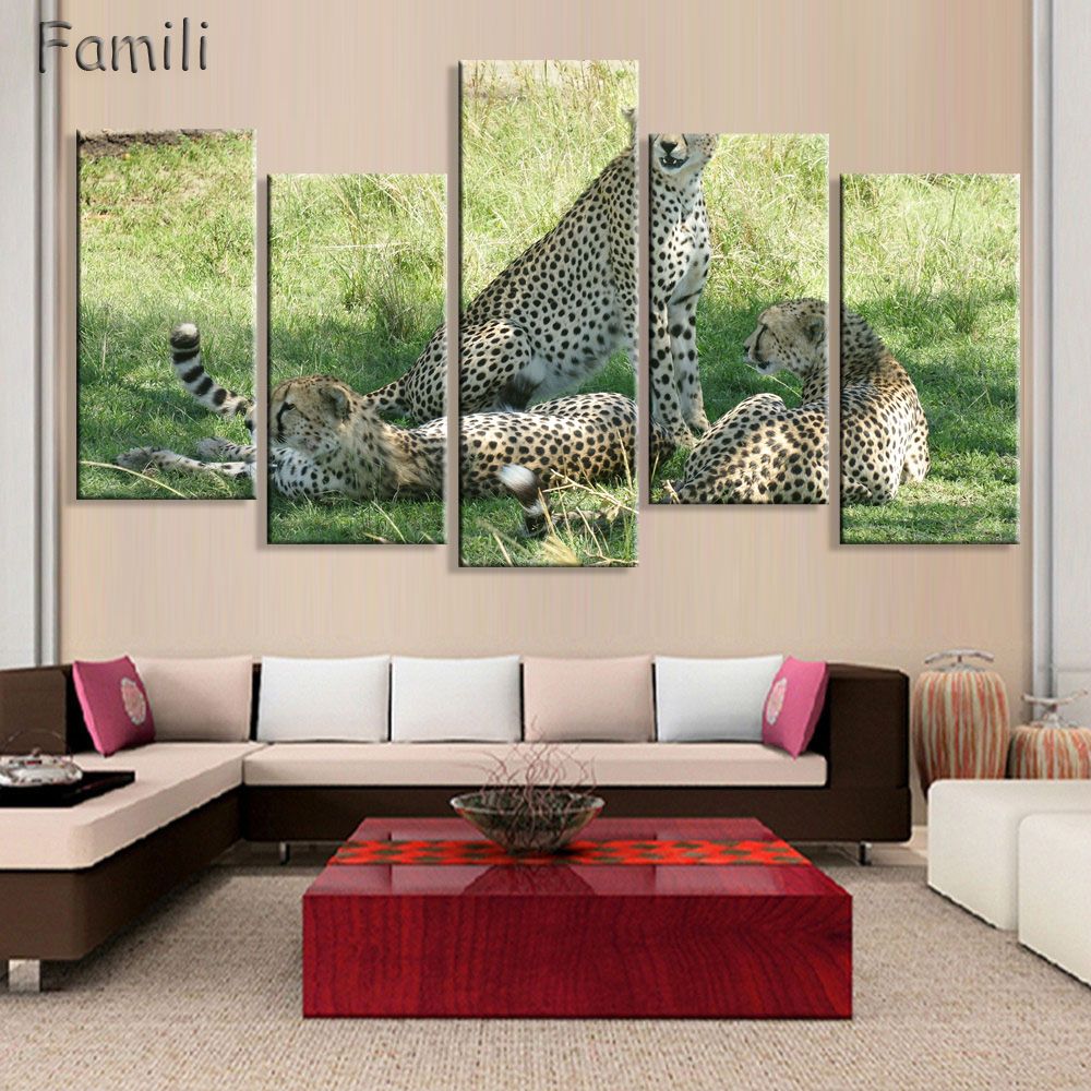 Modern Artwork Canvas Poster Hd Printed Modern 5 Panel Cheetah