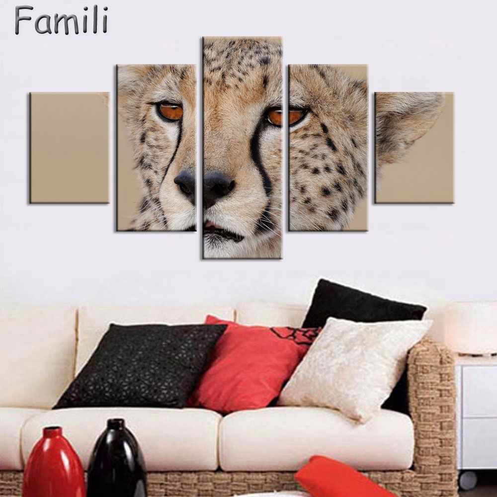 2020 5panels Cheetah Ready To Attack Modern Home Decor Canvas