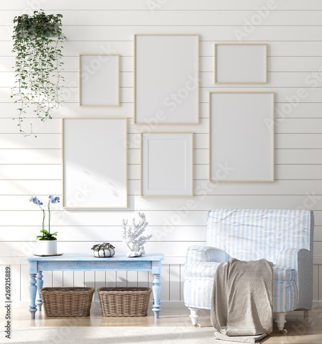 Mock Up Frame In Home Interior Background Coastal Style Living Stock Photo Picture And Royalty Free Image Image 124697984
