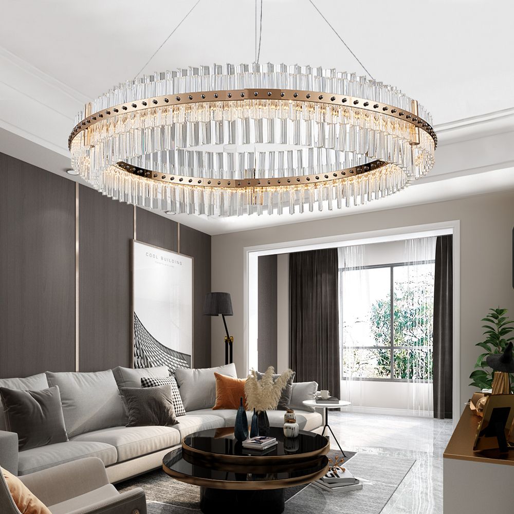 Modern Double Layered Circular Crystal Chandelier Living Room