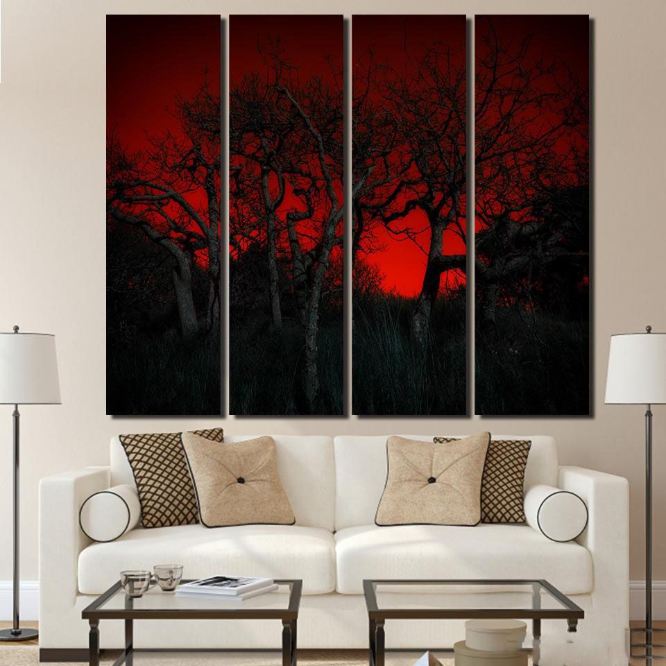 2020 Printed Dead Tree Dark Landscape Red Black Wall Art Painting