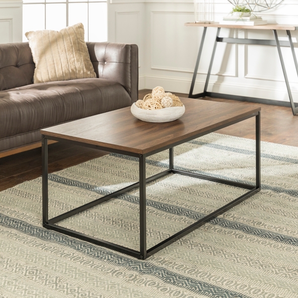 Dark Walnut Industrial Tray Style Top Coffee Table Kirklands