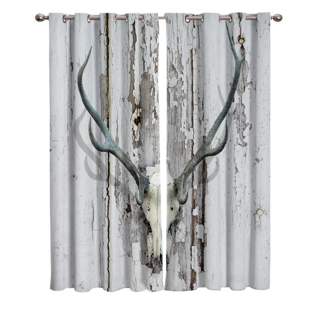Bring style to a living room with long drapes or whimsy to kitchens with a splash of color. Animal print curtains with deer fit in nicely with other wildlife themes and you don t have to have everything deer. Ambesonne deer curtains deer head with antlers silhouette form stained worn background animal illustration window treatments 2 panel set for living room bedroom decor 56 x 63 white and black.
