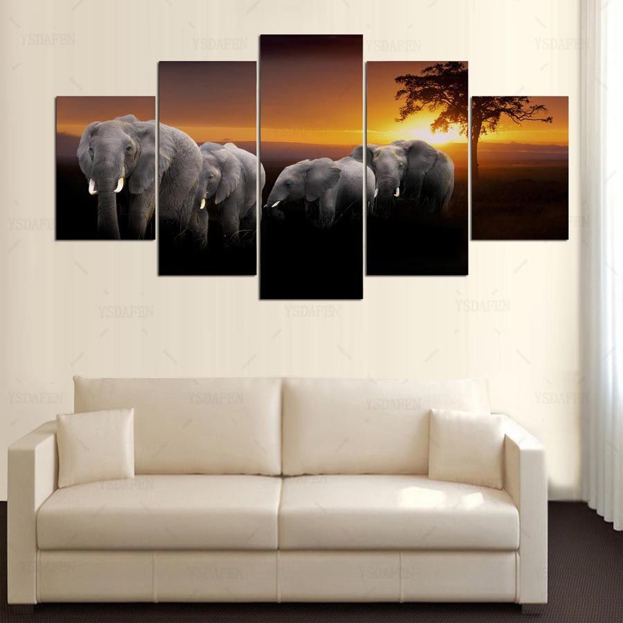 2020 Promotion Fallout 5 Ppcs Sunset Elephant Painting Canvas Wall