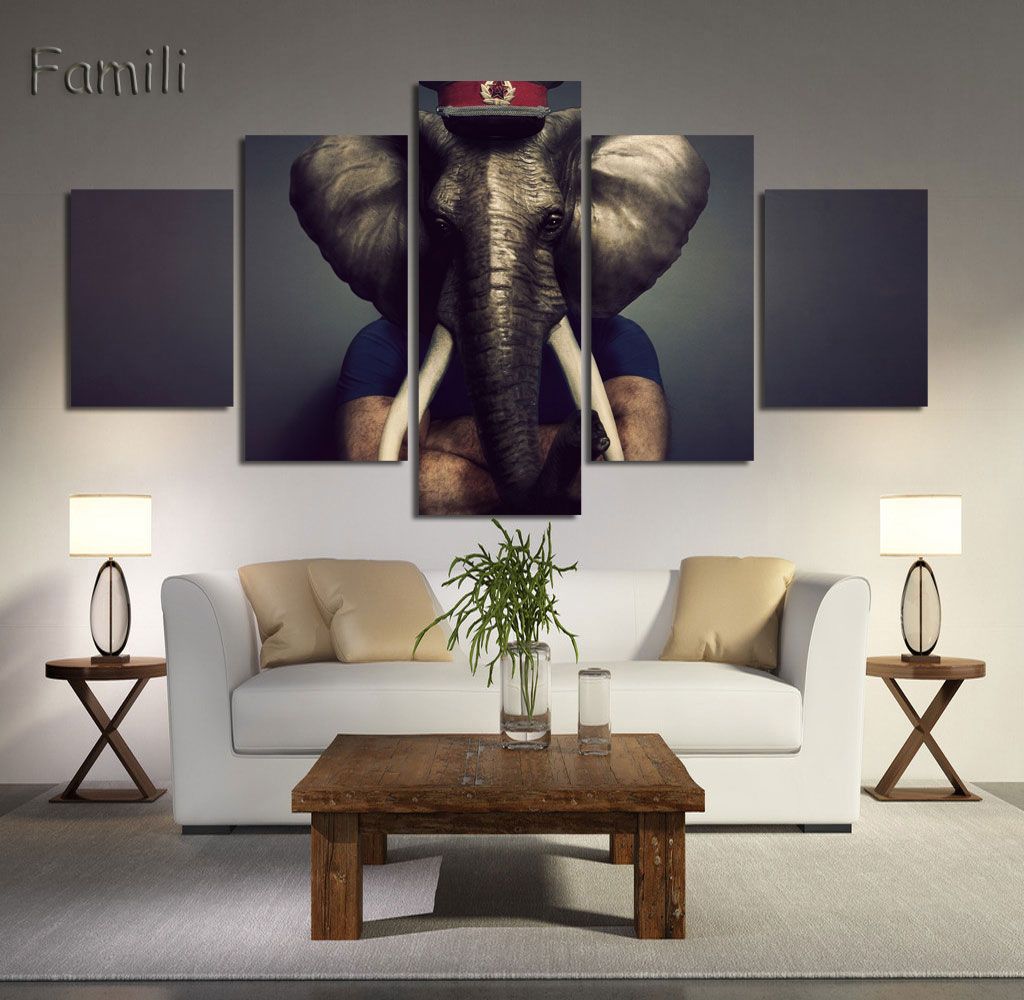 Artwork Painting Modular Pictures Framework 5 Piece Pcs Elephant