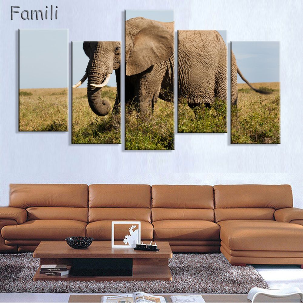 2020 5panel Home Decoration Living Room Canvas Print Elephant