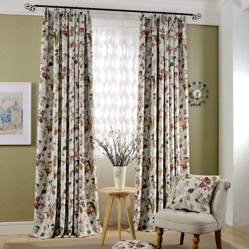 Floral Linen Curtains Fancy Window Blackout Curtains For The
