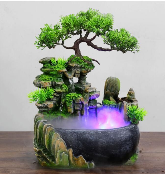 110v 220v Modern Water Fountain Led Waterfall Micro Landscape