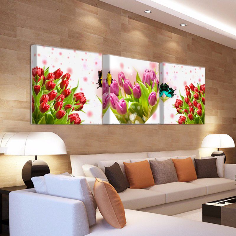 3 Piece Tulip Flower Painting Pictures On The Wall Frames For