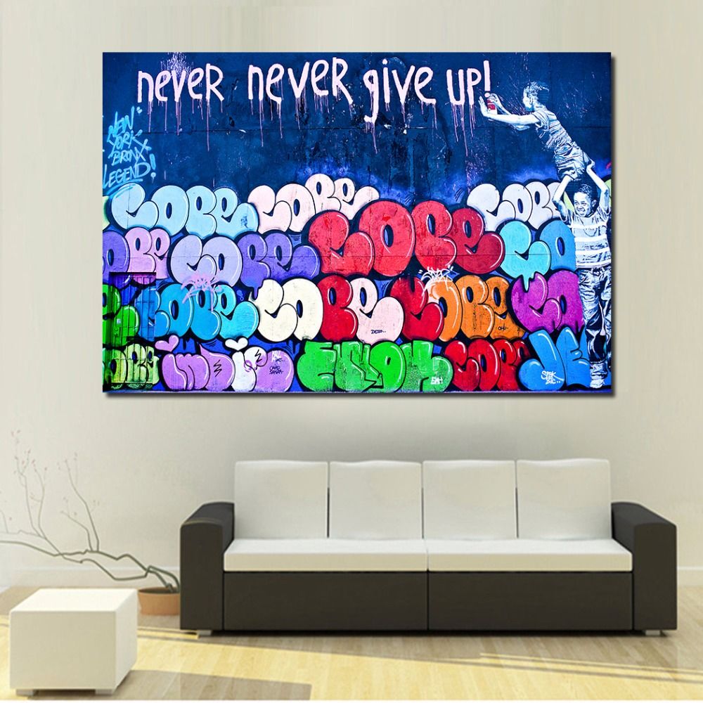2020 Canvas Graffiti Wall Pictures For Living Room Never Give Up