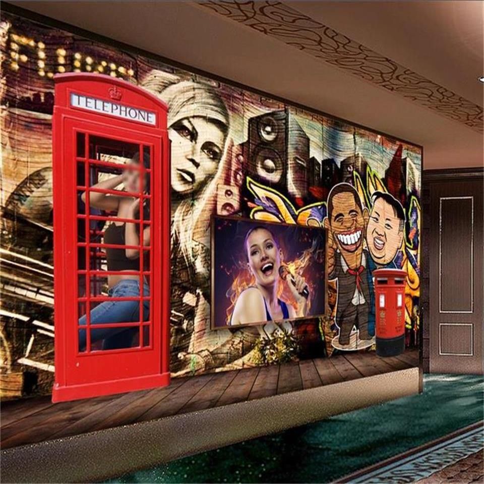 Beibehang Custom Wallpaper Continental Retro Graffiti Tv