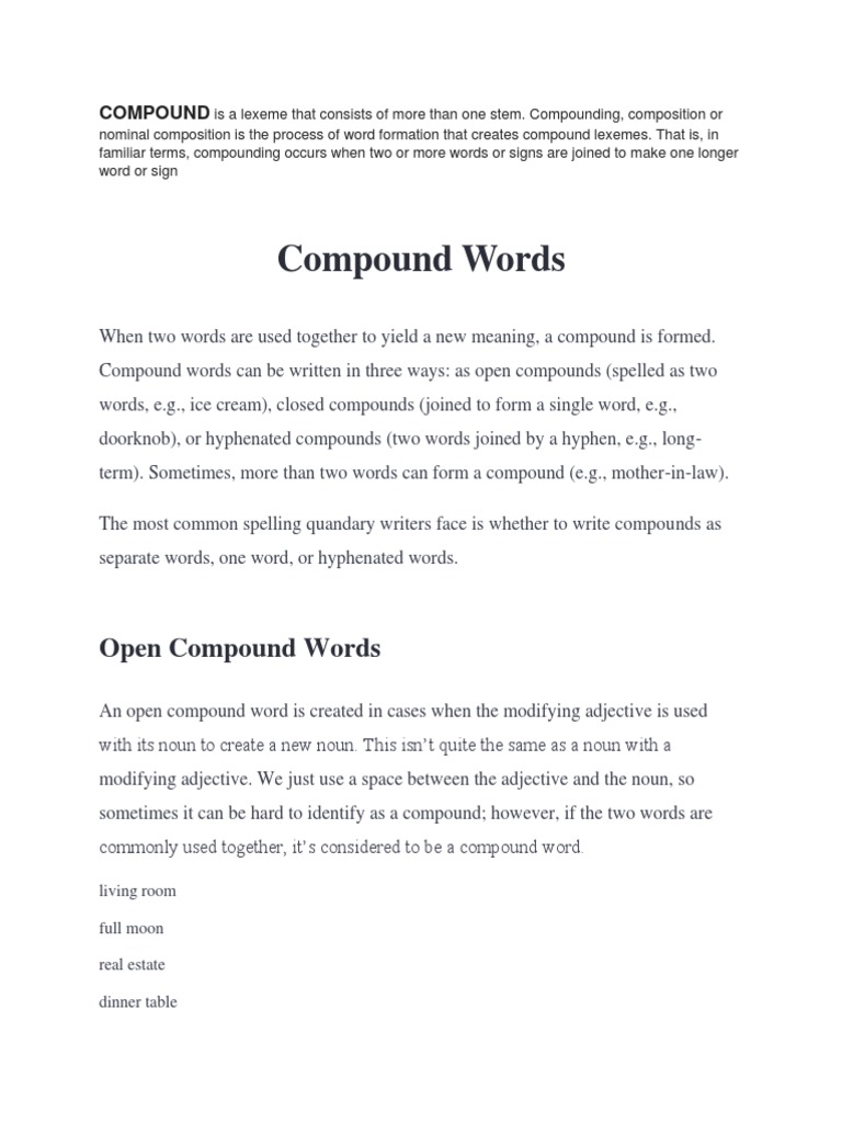 Compound Is A Lexeme That Consists Of More Than One Stem Docx