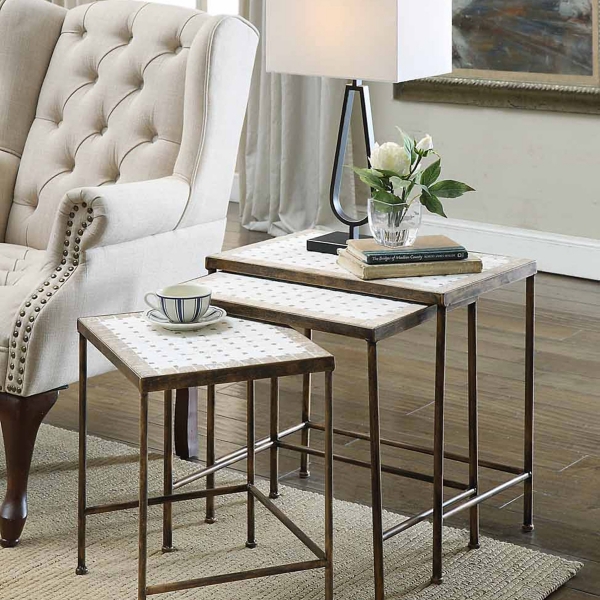 Nesting Travertine Top Accent Tables Set Of 3 Kirklands