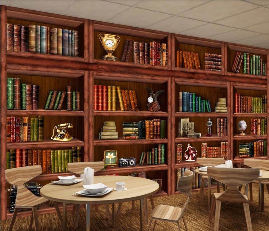 Modern Wallpaper For Living Room Creative Brown Bookshelf