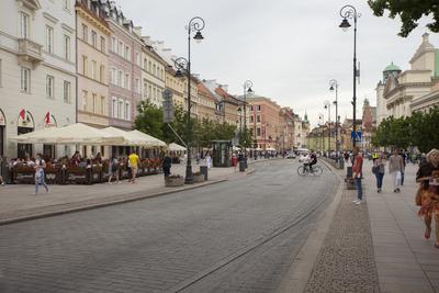 Cobbled Old Town Krakowskie Przedmiescie Street And Street Cafes