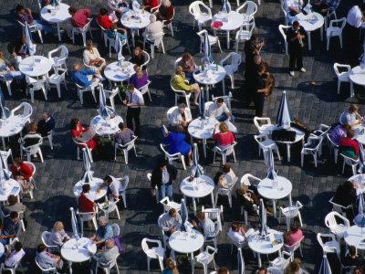 Overhead Of People Relaxing In Outdoor Cafe Old Town Square