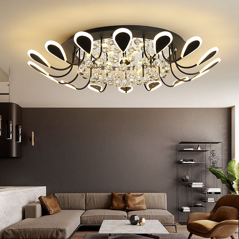 Modern Led Ceiling Light Fixtures For Living Room White K9 Crystal Ho