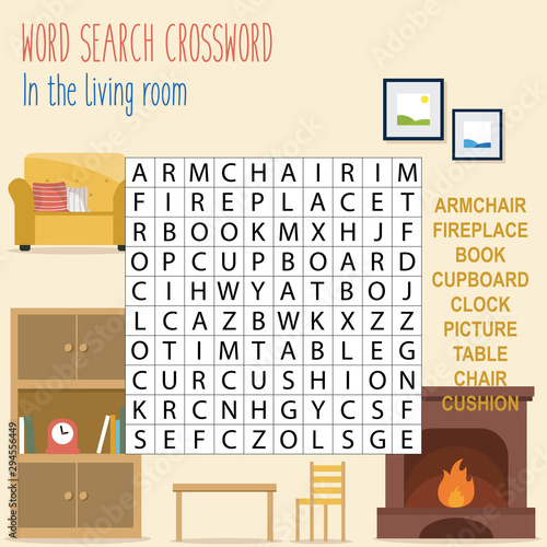 Easy Word Search Crossword Puzzle In The Living Room Stock