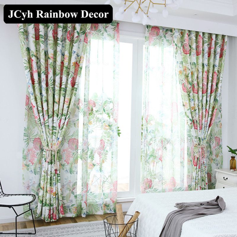 Pink Green Flower Burnout Tulle Curtains For Living Room