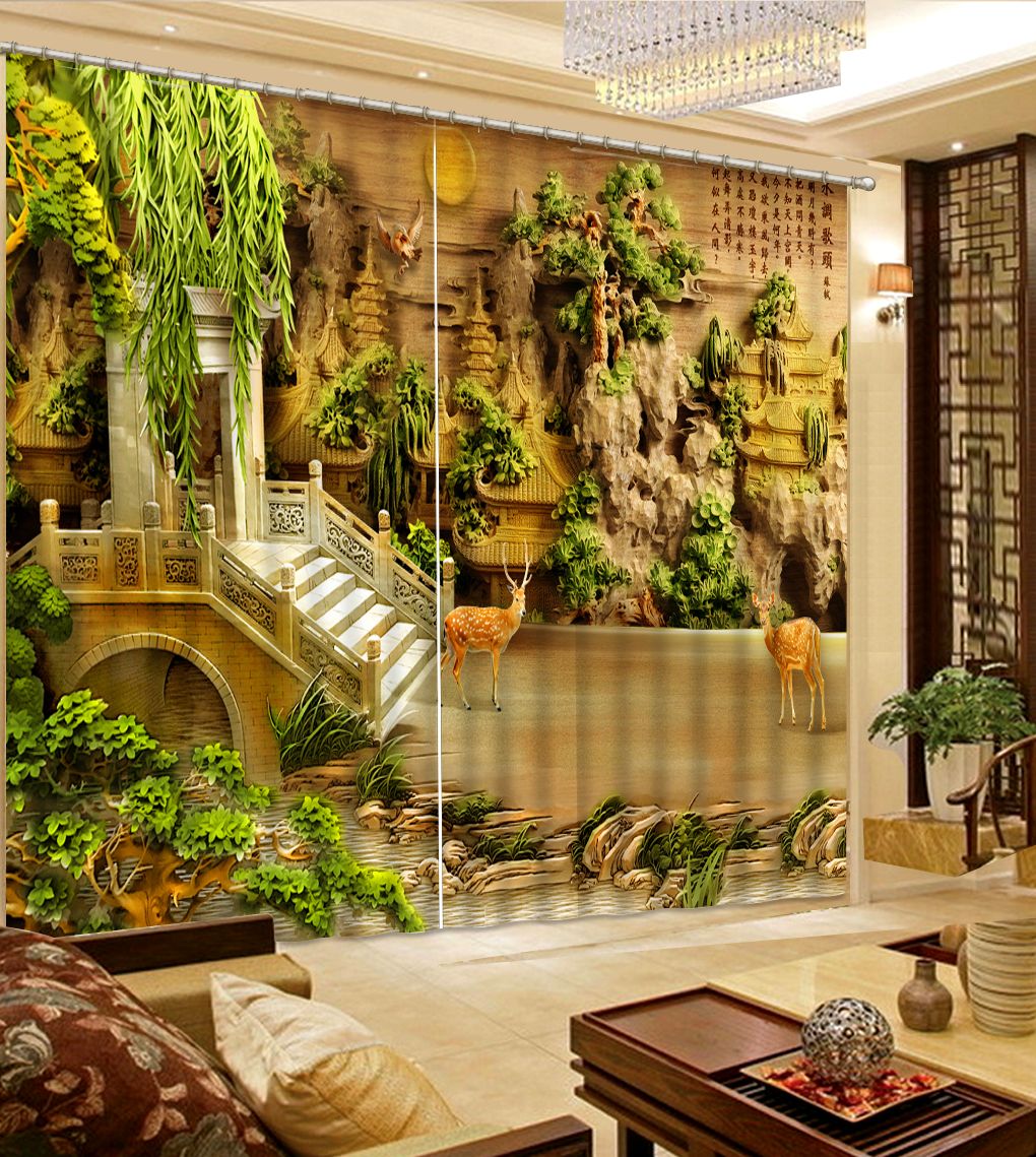Beautiful Scenery Chinese Luxury 3d Blackout Window Curtains Drape