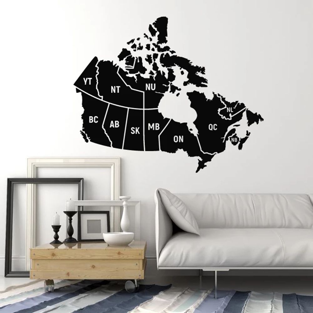 Canada Map Wall Stickers For Living Room Vinyl Wall Decal For