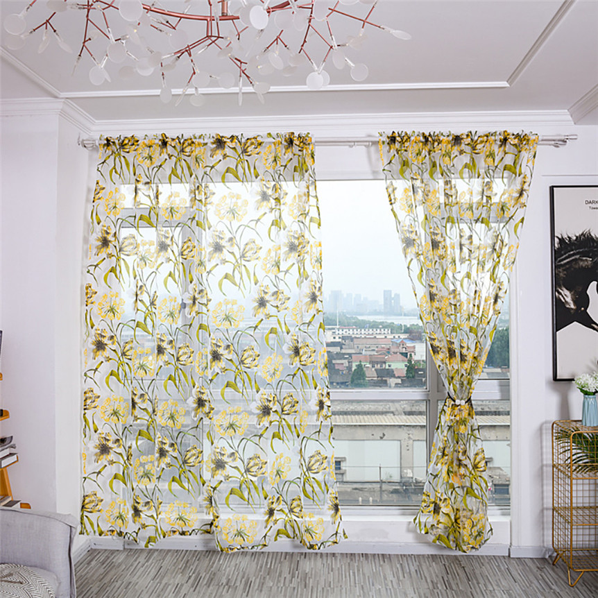 Sunflower Print Window Door Curtain Tulle Curtains Drape For