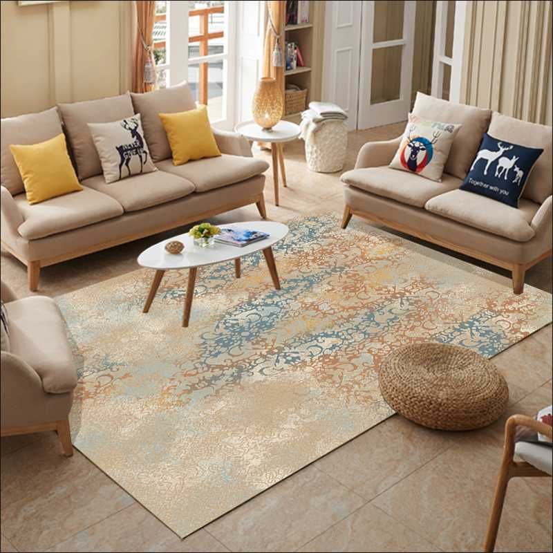 Nordic Style Living Room Area Rugs Abstract Marble Pattern Yellow