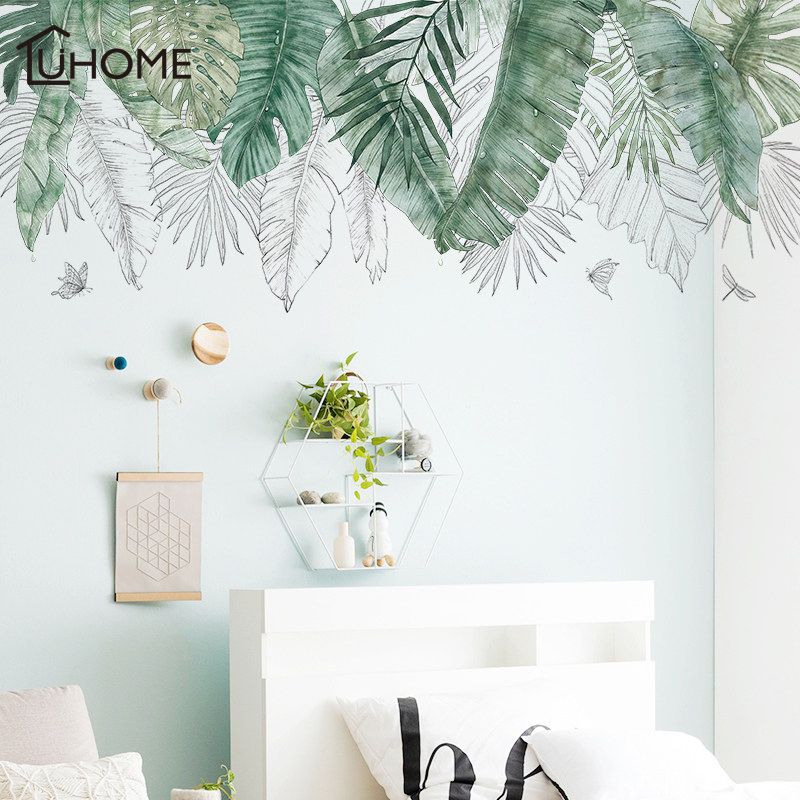 Fresh Natural Green Tropical Raffia Tree Leaves Wall Sticker Vinyl