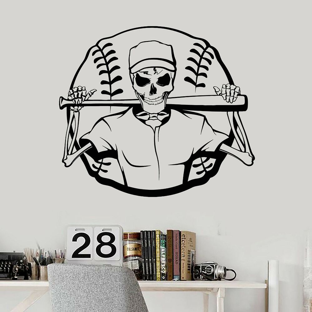 Skeleton Baseball Vinyl Wall Decal Ball Sports Wall Stickers Tenn