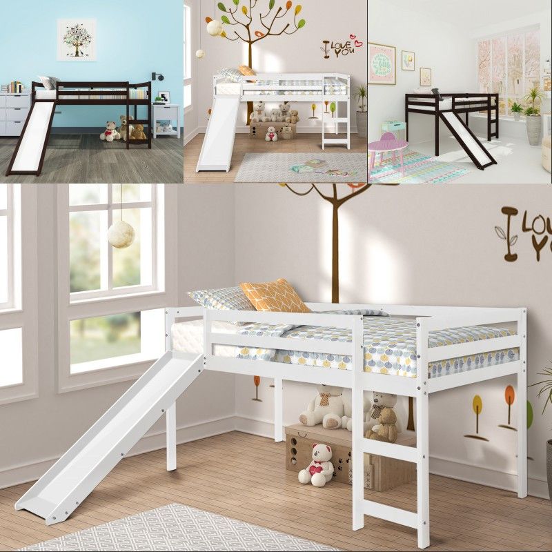 2020 Vintage Espresso Kids Loft Bed With Slide Multifunctional Design Twin Living Room Decoration In Stock Us From Greatfurnishing 290 83 Dhgate Com