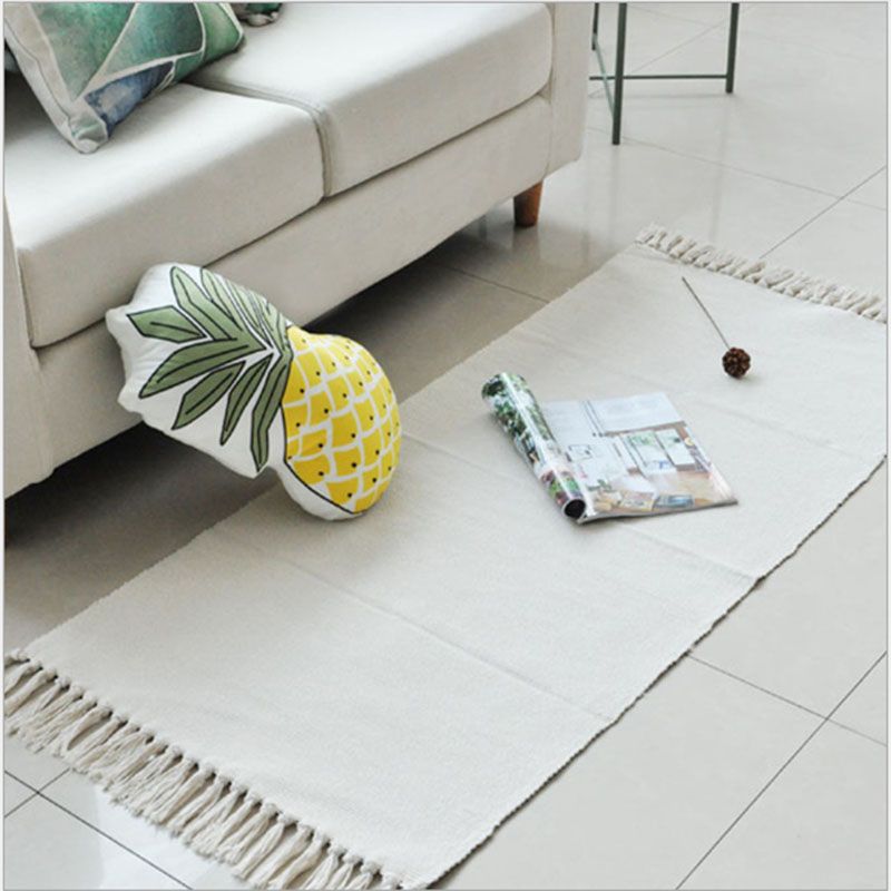 White Durable Cotton Handmade Woven Area Rug For Bedside Bedroom