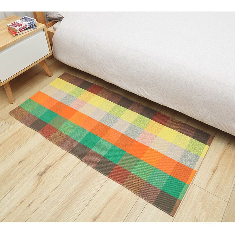 100 Cotton Woven Area Rugs Plaid Check Striped Carpet Mat Durable