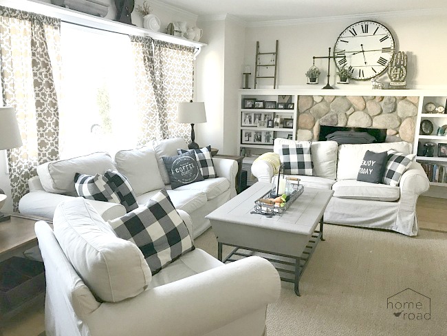 Farmhouse Living Room Using Neutral Colors Ikea Couches And