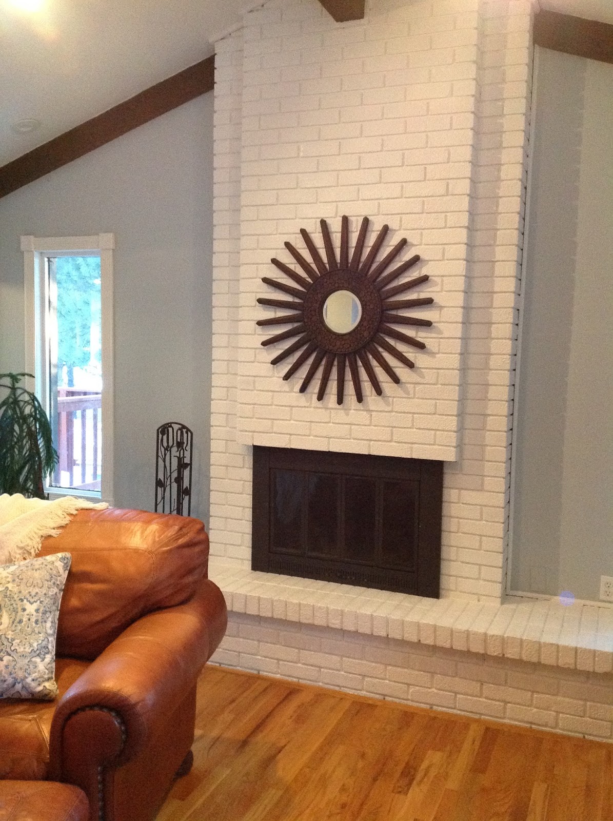 Painted Brick Fireplace Cedar Beam Wood Beams In Living Room