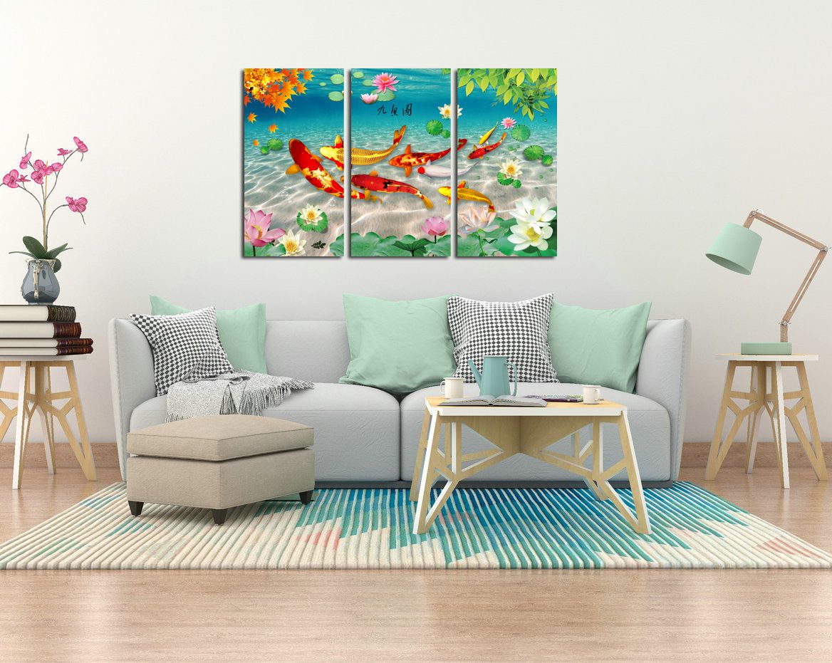 Buy Finished Product Nine Fish Feng Shui Painting Triptych