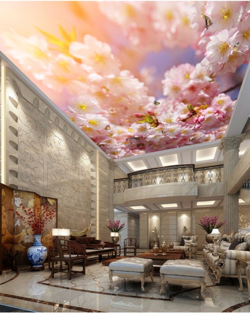 Beautiful Peach Butterfly Mural Ceiling Ceiling Wall Painting