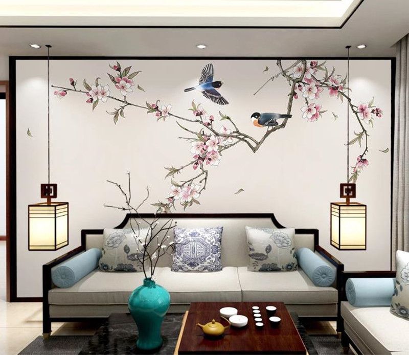 Magpie Peach Blossom Wall Stickers Chinese Style Wallpaper Living
