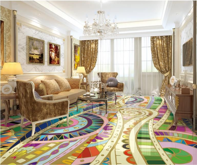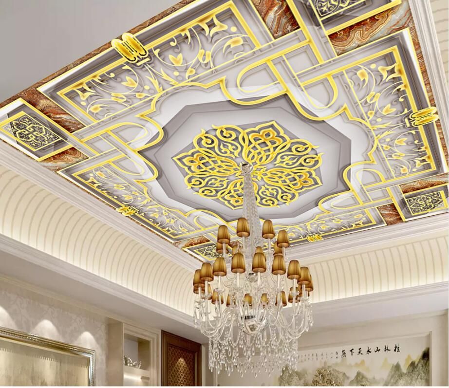 Custom Photo Golden Pattern Three Grade Plaster Ceiling Mural