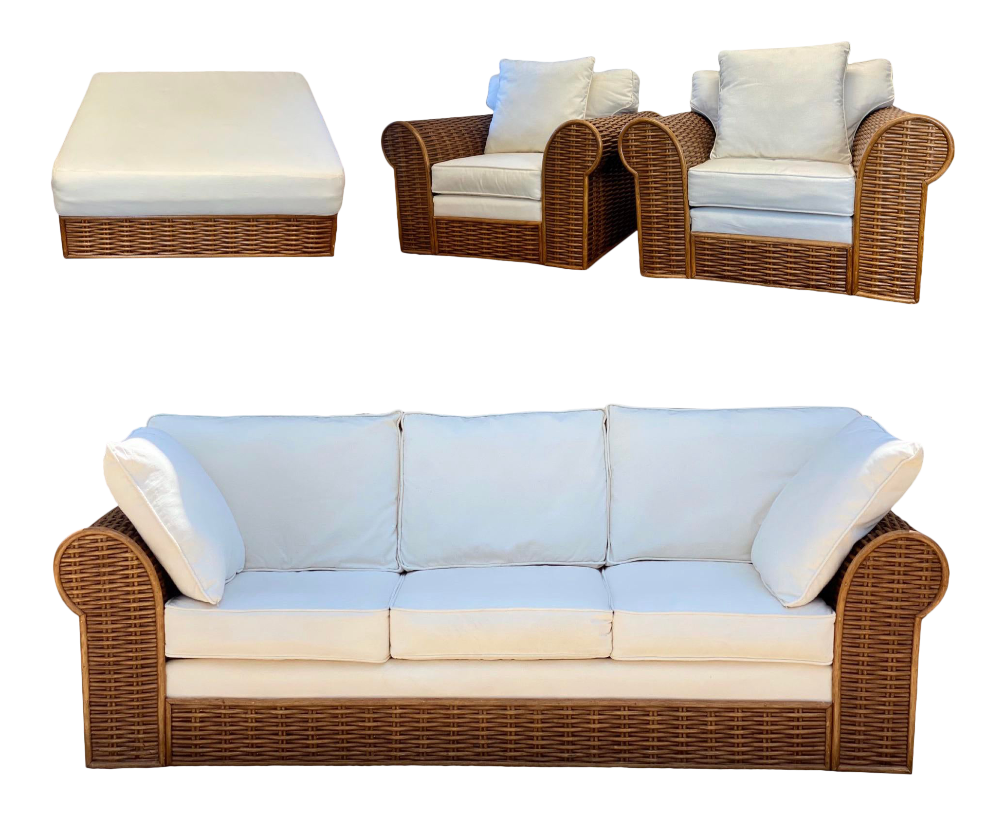 Boca Rattan Biscayne Rattan Living Room Set In Royal Oak 4 Pieces