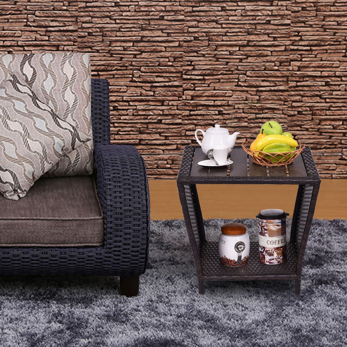 Costway Brown Rattan Wicker Steel Side Table Outdoor Furniture