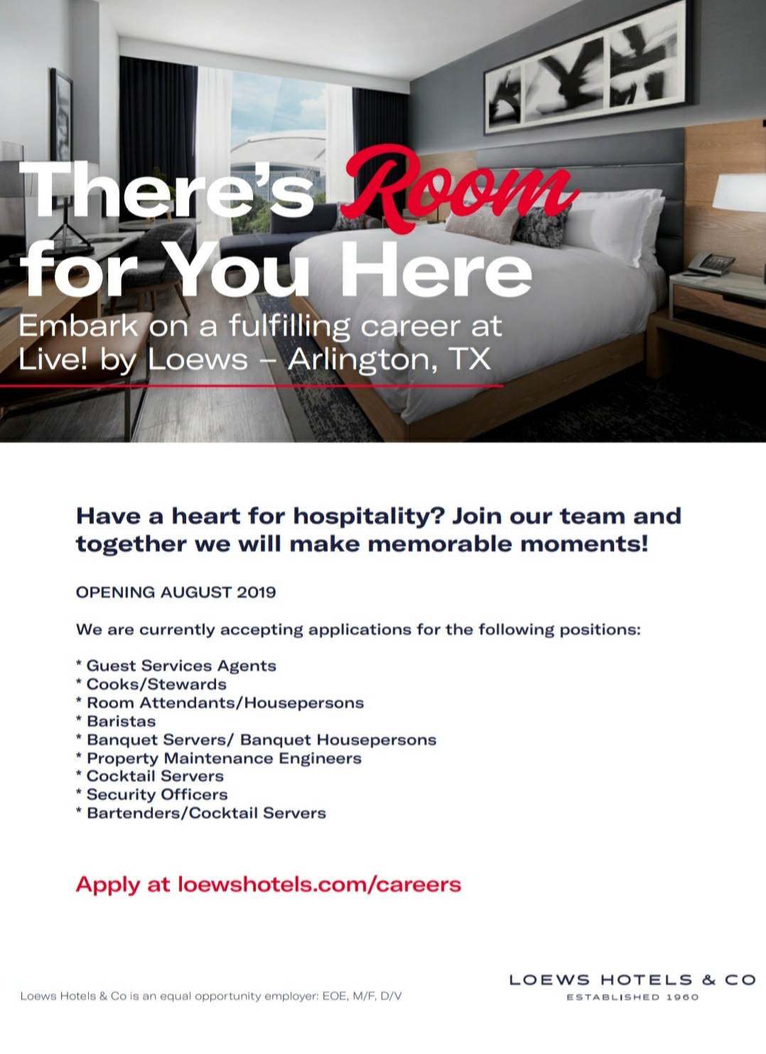 Hospitality Industry Jobs Apply Loews Hotel Co Arlington Usa