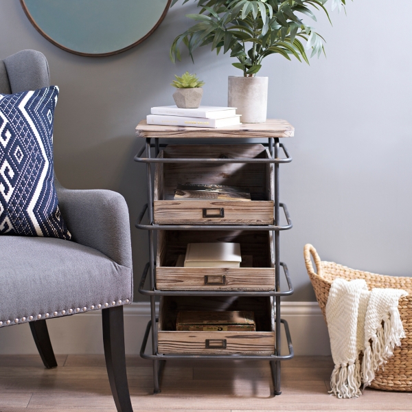 Rustic Industrial 3 Drawer Side Table Kirklands
