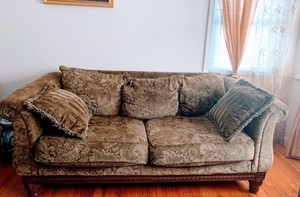 Hs Formal Traditional Brown Finish Sofa Loveseat Chair Pillows